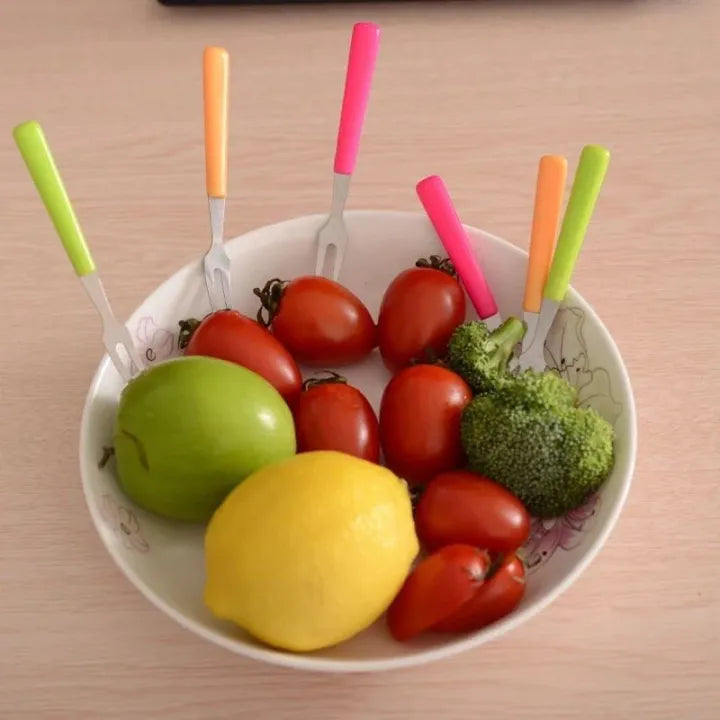 This set of 10 stainless steel fruit forks is perfect for serving appetizers, fruits, desserts, or small bites in a stylish and hygienic way. Crafted from durable, rust-resistant stainless steel, each fork features a sleek, decorative design that adds a touch of creativity to your table setting. Ideal for parties, lunchboxes, or everyday use, these mini forks are also great for kids, making mealtime more fun and engaging. Easy to clean and reusable, they offer a sustainable alternative to disposable picks while enhancing the presentation of your food.
