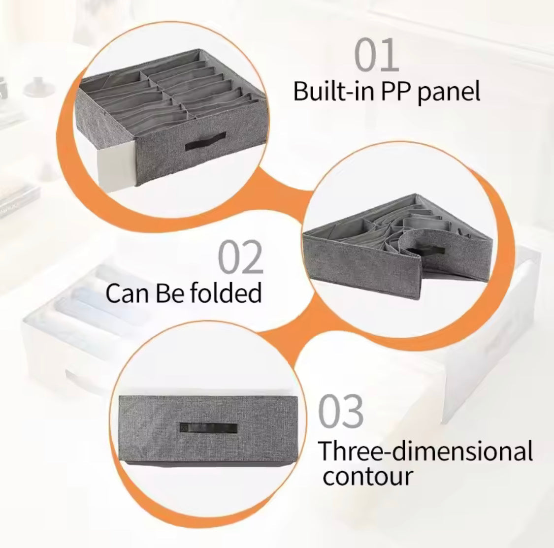 16 Grid Wardrobe Organizer, Cabinet Drawer Organizer, Double Raw Storage Basket
