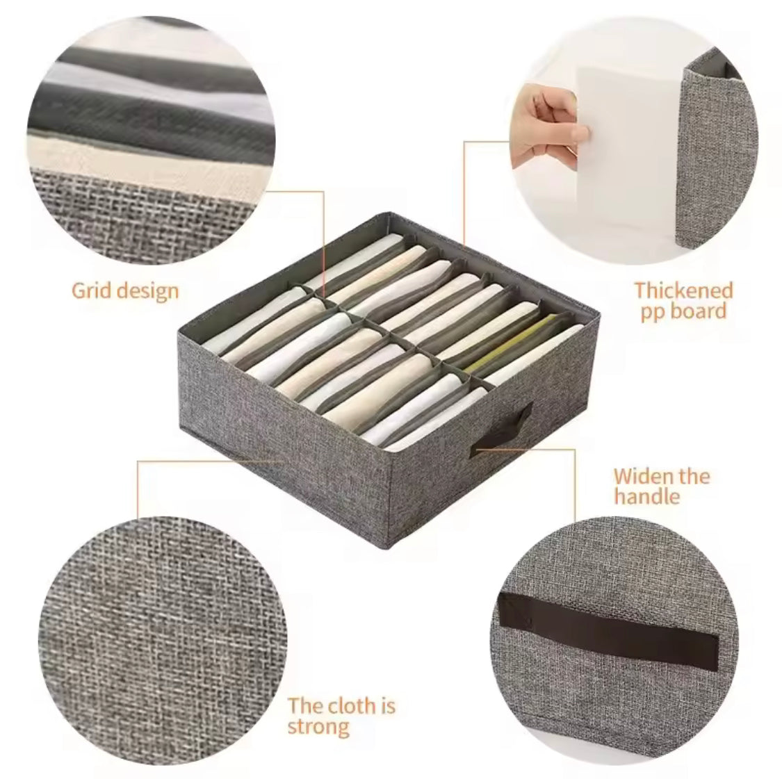 Maximize your storage and minimize clutter with this 16-grid cloth folding organizer. Designed to bring structure to your drawers, closets, or shelves, it features 16 individual compartments ideal for organizing socks, underwear, ties, accessories, or small garments. Made from durable, breathable fabric, this lightweight yet sturdy organizer folds flat when not in use making it both space-saving and travel-friendly. Whether you're tidying up your bedroom or streamlining a suitcase, this organizer is the smart solution for effortless order.