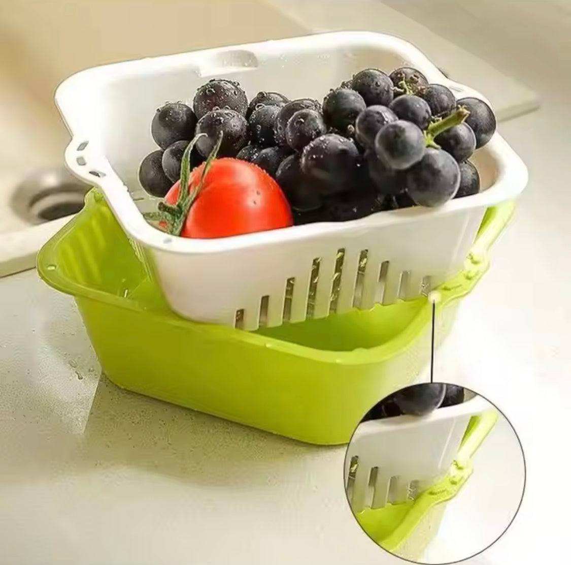 Our Fruits and Vegetables Strainer Basket with Cover is the perfect kitchen companion for washing, draining, and storing your fresh produce. Made from durable, food-grade plastic, this multipurpose basket features a removable strainer and a secure lid to keep contents covered and hygienic. Whether you're rinsing berries, draining pasta, or keeping greens crisp in the fridge, this basket simplifies your prep and storage routine. Compact, lightweight, and easy to clean – it’s a must-have for every modern kitchen.