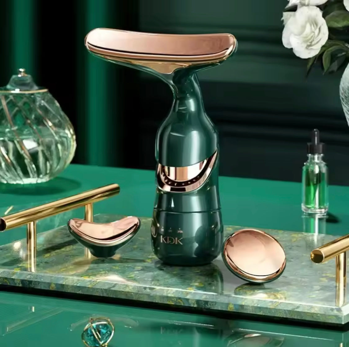 Revitalize your skin with the 3-in-1 Face Lifting Device designed for face, neck, and eye care. This anti-aging beauty massager helps lift, firm, and smooth skin, reducing fine lines and puffiness for a youthful glow. Perfect for your daily skincare routine.