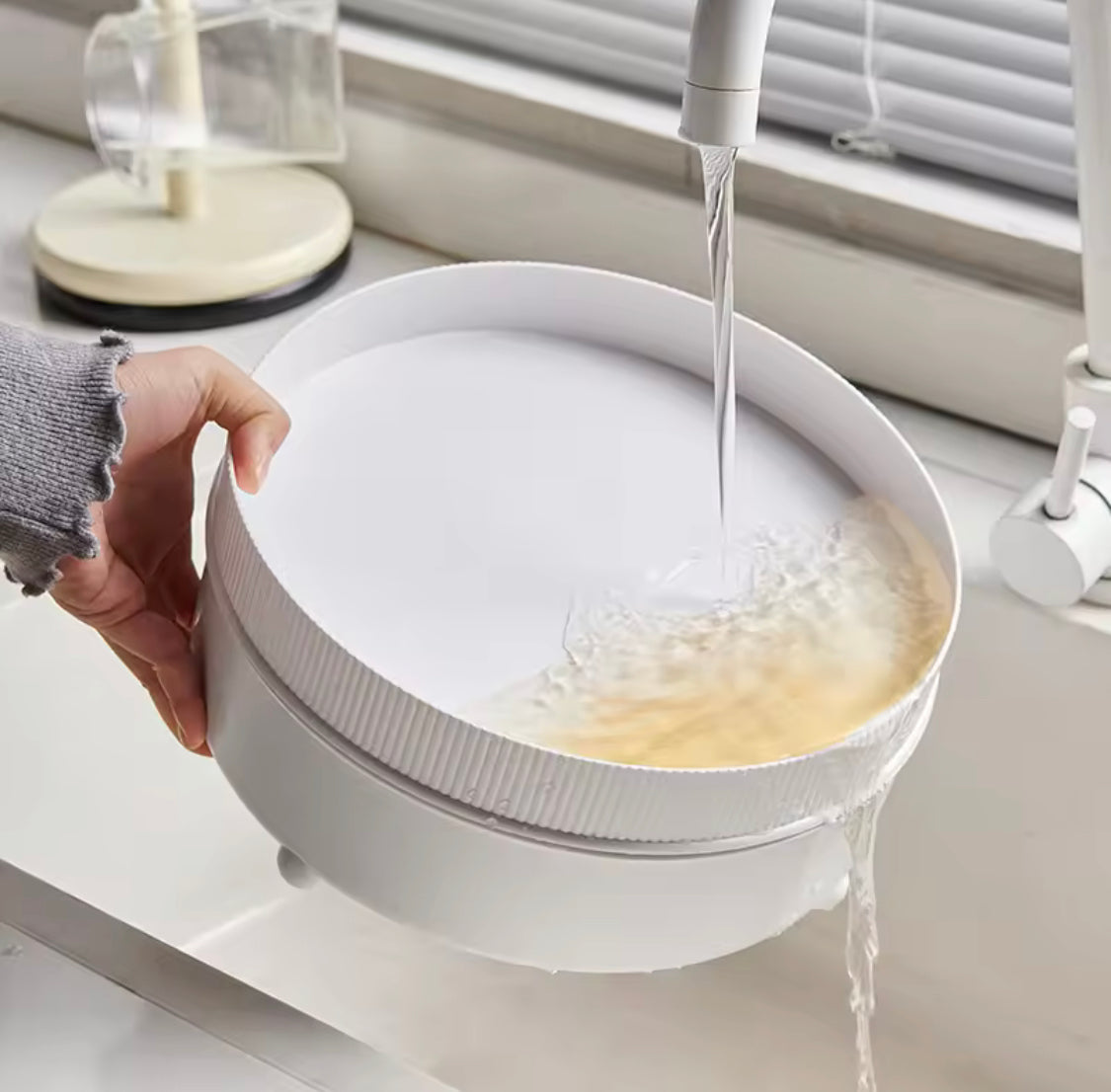 Add style and convenience to your space with this 360° rotation spice rack, a large-capacity storage tray perfect for organizing kitchen seasonings or cosmetics. Designed with a smooth rotating base, it allows easy access to all your items with a simple spin, making it ideal for countertops, cabinets, or vanity tables. Its sturdy construction and raised edges keep items secure while in motion, and the spacious, multi-use design accommodates jars, bottles, or beauty products with ease. Whether in the kitchen or bathroom, this rotating tray offers a practical and elegant solution for clutter-free organisation.