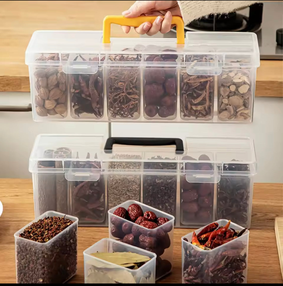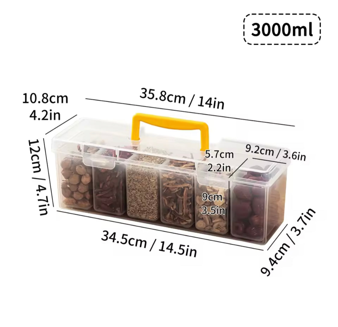 6 Grids Sealed Plastic Storage Box With Handle, Portable Large Capacity Spice Storage Container, Spices Kitchen Organizer