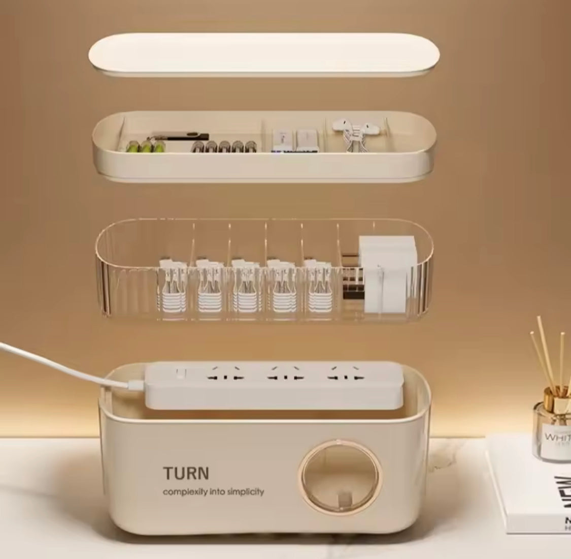 This data cable storage box is a sleek and practical solution for organizing your cables, wires, and plugs. This compact storage box helps keep your charging cables, plug boards, and cords neatly tucked away, reducing clutter on your desktop or workspace. Designed with a spacious interior and adapters, while its ventilation holes ensure proper airflow to prevent overheating. Its minimalist, modern design fits seamlessly into any home or office environment, offering both functionality and a clean, organized look for your cables and electrical accessories.