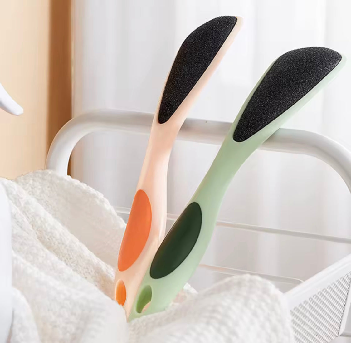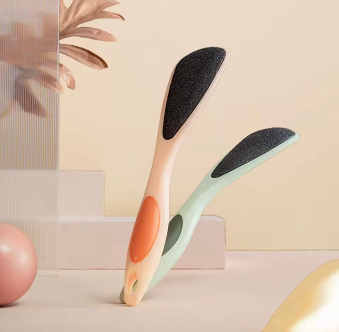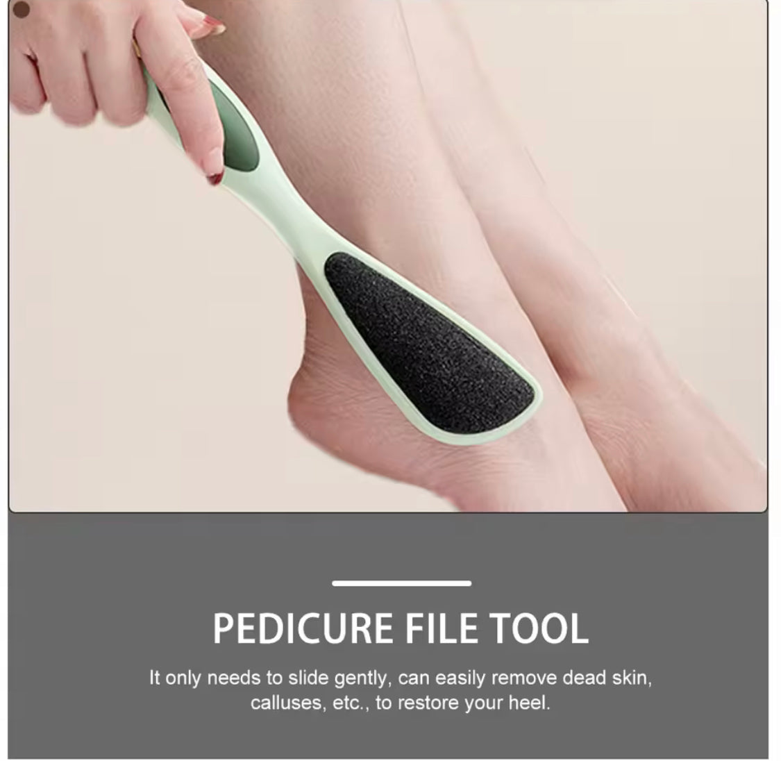 This double sided foot file callus remover is a durable and efficient pedicure tool designed to remove hard, dead skin and calluses from your feet with ease. Featuring a dual-sided design—one coarse side for tackling tough calluses and a finer side for smoothing skin—it ensures a complete foot care experience. The long, anti-slip handle provides a comfortable and secure grip, making it easy to reach all areas of the foot. Portable and easy to clean, this foot file is ideal for both at-home and travel use, helping to maintain soft, smooth feet effortlessly.