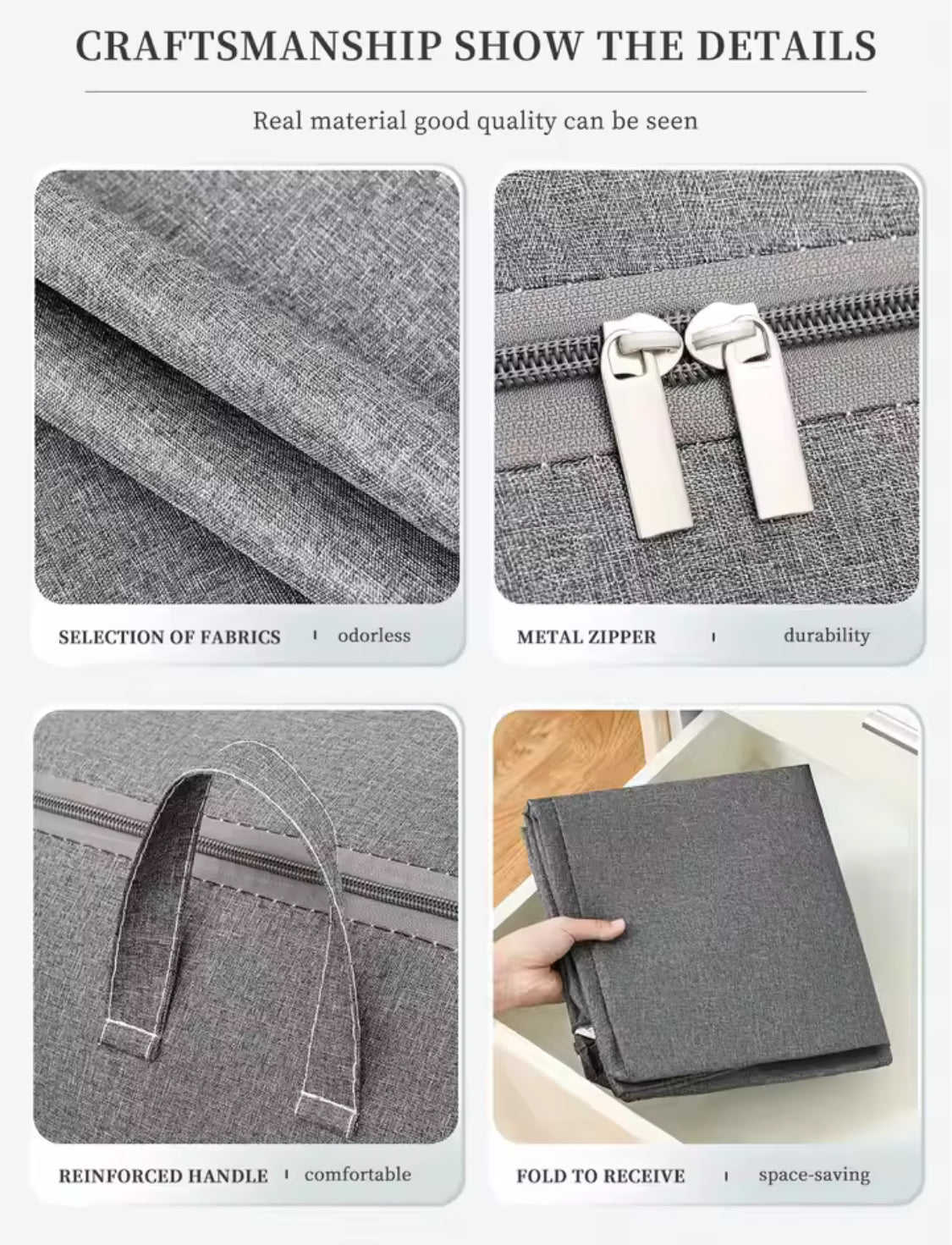 This large capacity clothing storage bag is a versatile and foldable storage solution designed to keep your clothes organised and dust-free. Made from durable, breathable materials, this portable organizer is perfect for use in bedrooms, closets, or under beds. It features a spacious interior that can accommodate seasonal clothing, blankets, or linens, while its sturdy handles make it easy to carry and move. The zippered closure ensures your items remain protected from dust and moisture, and when not in use, the bag conveniently folds flat for easy storage. Ideal for maximising space and keeping your home tidy.