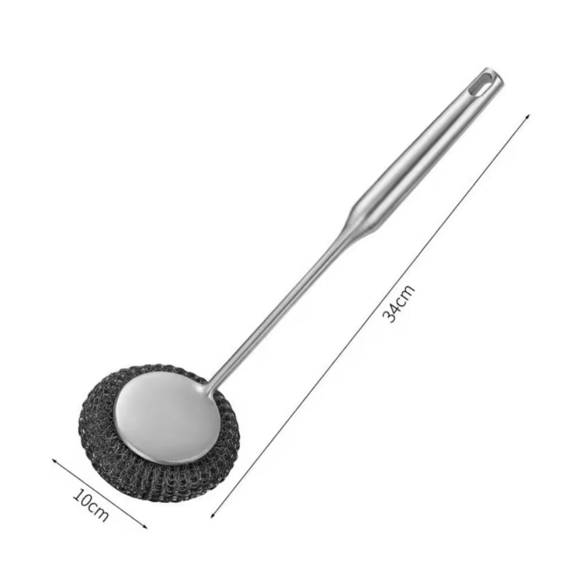 Tackle tough grime with ease using our Long Handle Stainless Steel Wire Ball Brush. Designed for strong decontamination, this durable brush features a tightly wound wire ball ideal for scrubbing away stubborn stains, grease, and residue from sinks, pots, and pans. The extended handle offers added leverage and keeps your hands safely away from hot water and harsh detergents. Built to last, it's the perfect tool for heavy duty kitchen cleaning and daily dishwashing needs.