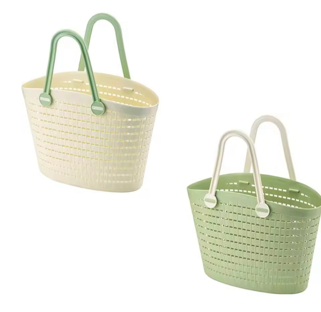 This portable handheld bath basket is a versatile and multifunctional storage solution designed for convenience and organization. Crafted with a collapsible design, it is perfect for compact storage when not in use, making it ideal for small spaces. Its hollow structure allows for excellent ventilation and drainage, making it suitable for use in bathrooms, laundry rooms, or even for outdoor activities. Lightweight yet durable, the basket features comfortable handles for easy carrying and is perfect for holding toiletries, laundry, cleaning supplies, or other household items. With its sleek and practical design, this basket combines functionality with space-saving efficiency.
