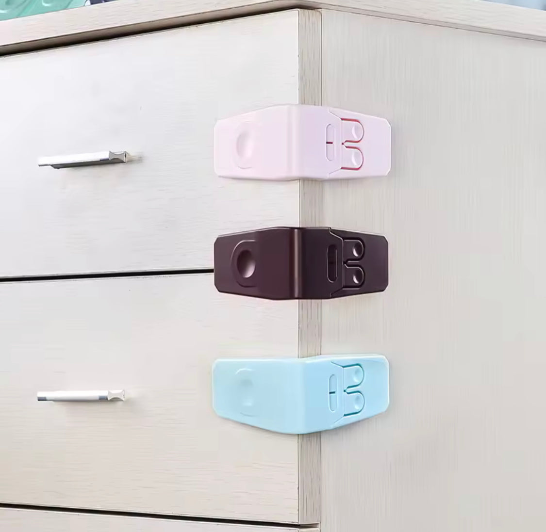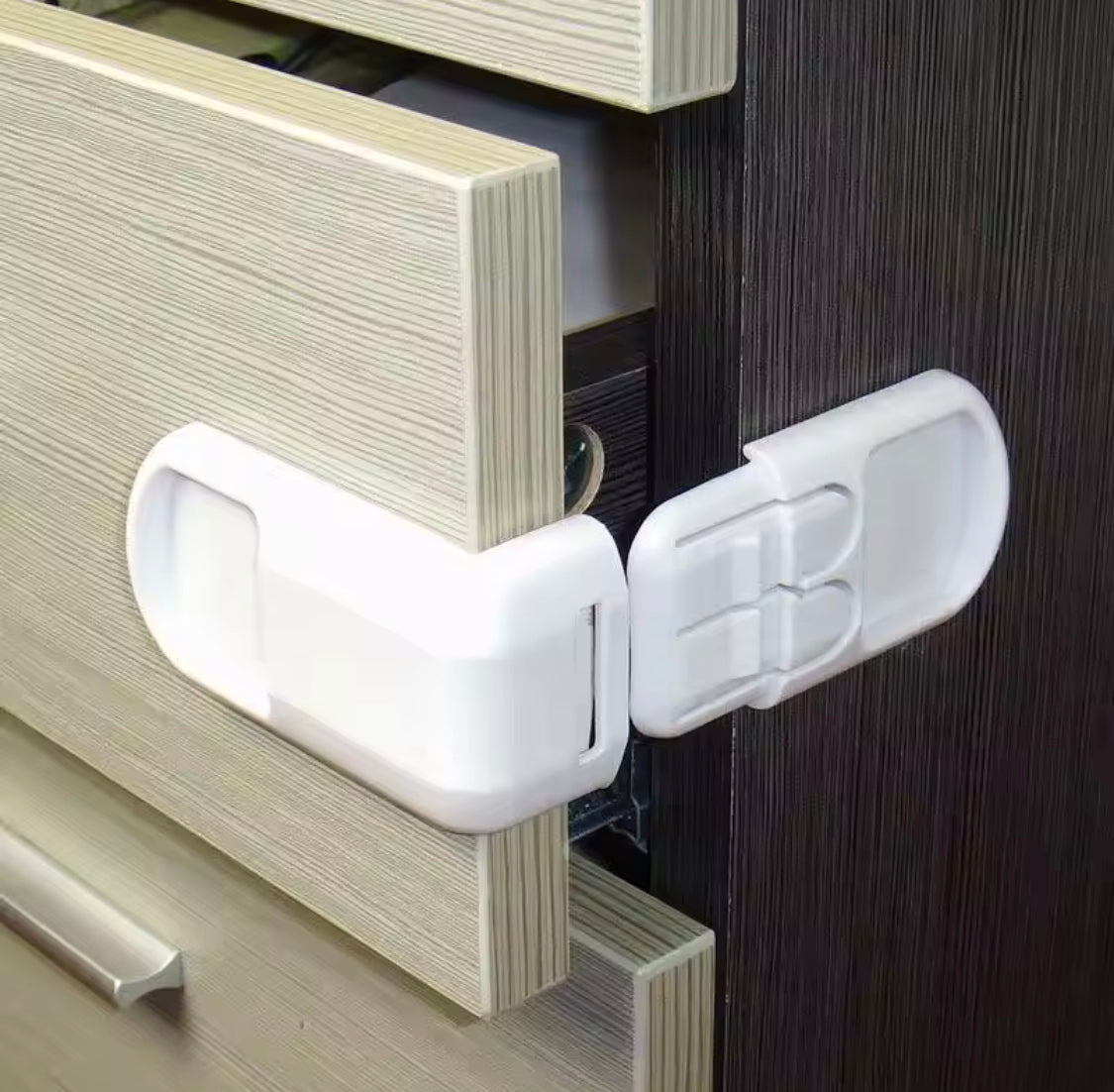 This multifunctional children safety drawer lock is a versatile and reliable solution designed to keep curious little hands safe by securely locking drawers, cabinets, refrigerator doors, and more. Made from durable, non-toxic materials, this lock features a strong adhesive backing for easy installation without tools or drilling. Its anti-theft and child-proof design ensures that dangerous or fragile items stay out of reach, providing peace of mind for parents and caregivers. Ideal for use in kitchens, bedrooms, and other areas of the home, this safety lock combines functionality, durability, and convenience to help protect your child from potential hazards.