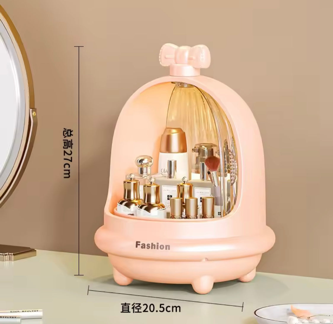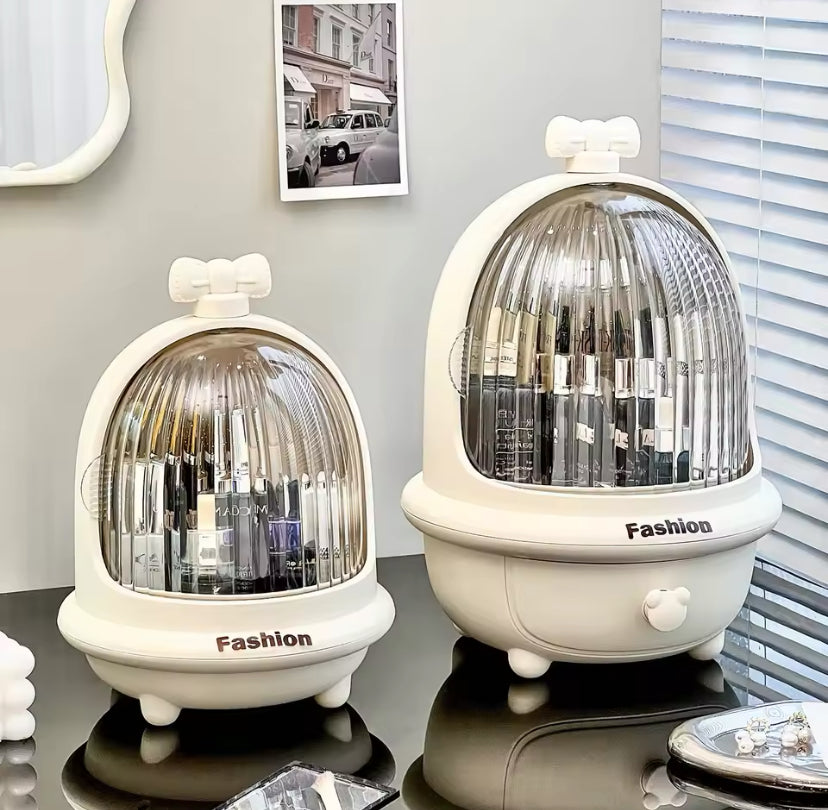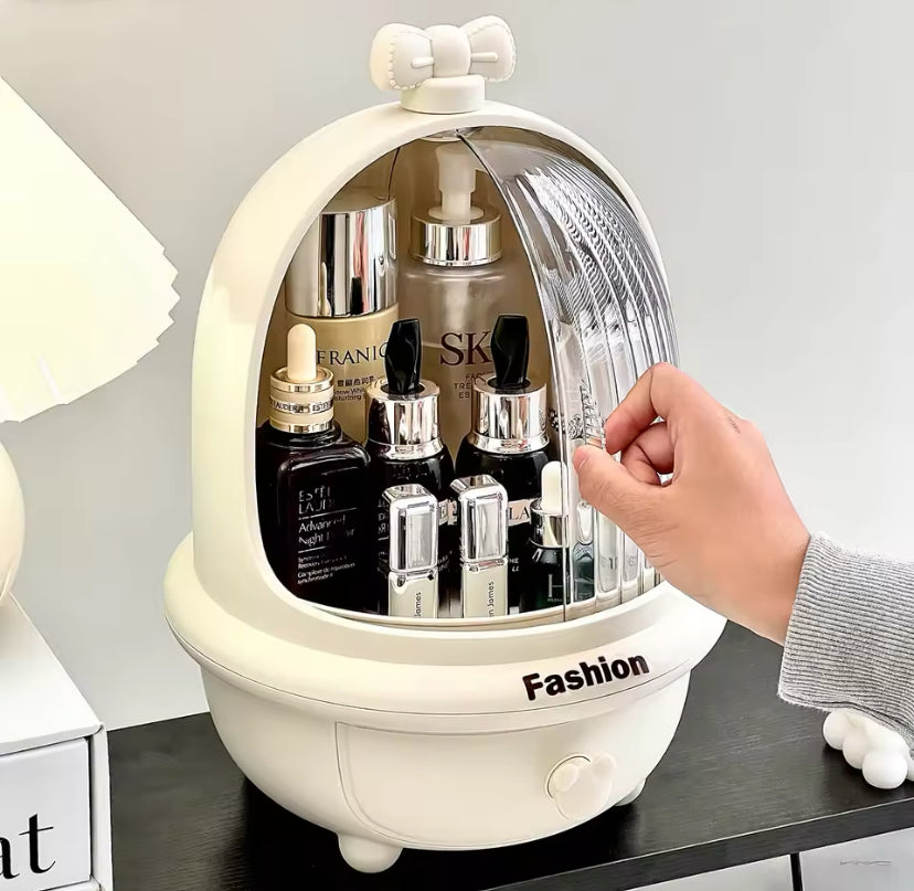This 360° rotatable makeup organizer is a large, functional cosmetic storage box designed to keep your vanity neat and organised. Featuring a 360-degree rotating design, it provides easy access to all your makeup and beauty essentials, allowing you to spin the organizer to find what you need quickly. Crafted from durable, dust and water-resistant materials, it helps protect your products while keeping them safe from spills and dirt. Its sleek, modern look adds a touch of elegance to any vanity, while the spacious compartments offer ample storage for cosmetics, skincare products, and accessories.